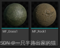 2、由于地面不会只有一种质地,所以先新建两个材质方法grass和rock。