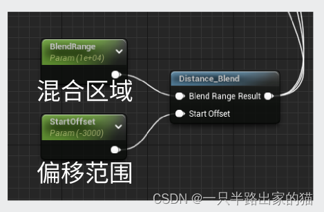 与摄像机的距离,生成一个遮罩,用来混合近处和远处的效果。