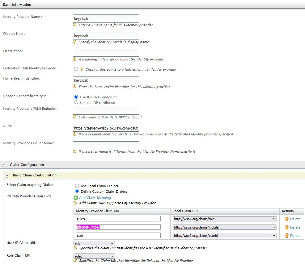 在 WSO2 Identity Server 或 WSO2 API Manager 中,Identity Providers (身份提供者) 功能允许您将外部身份管理系统(如 Keycloak、Azure AD、Okta 等)集成到 WSO2 平台中,实现联合身份认证(Federation)。以下是使用 WSO2 Identity Providers 功能并与 Keycloak 对接的完整步骤: