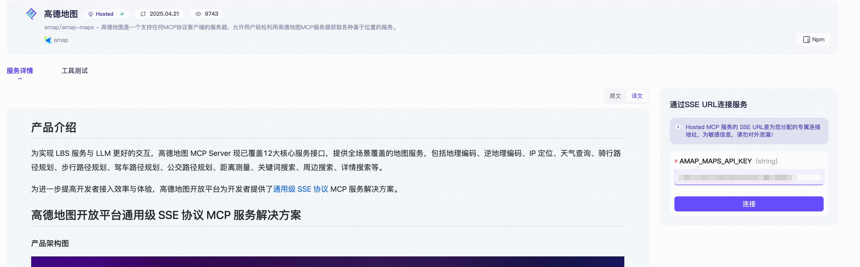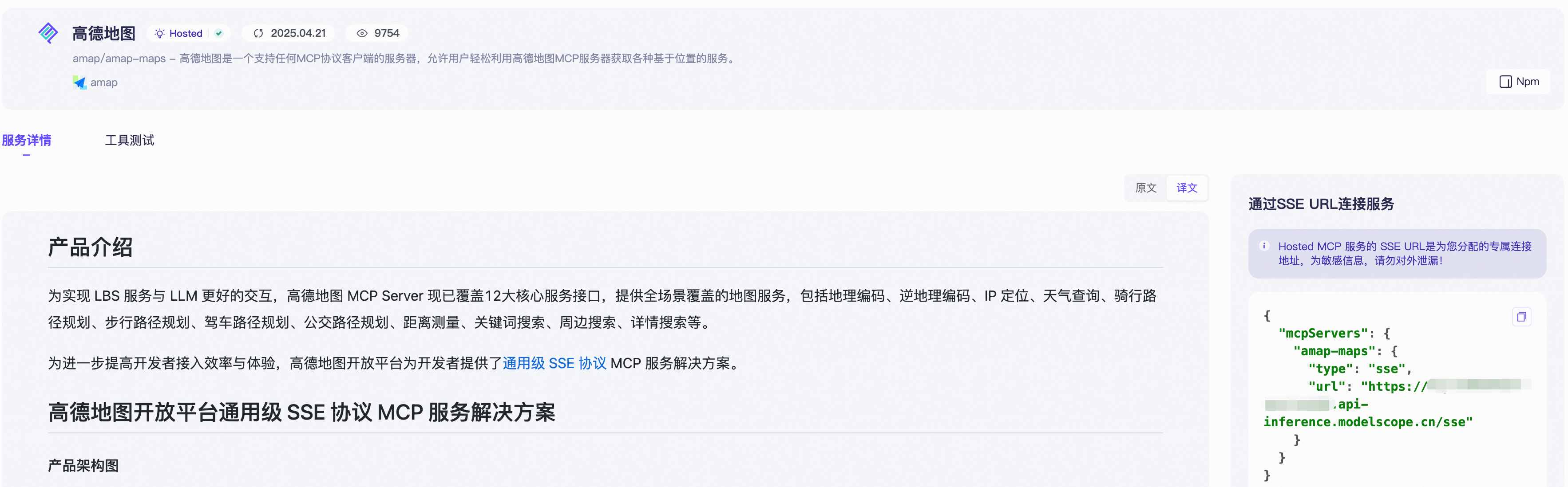 1.在ModelScope MCP广场,选择一个MCP服务(比如高德地图)