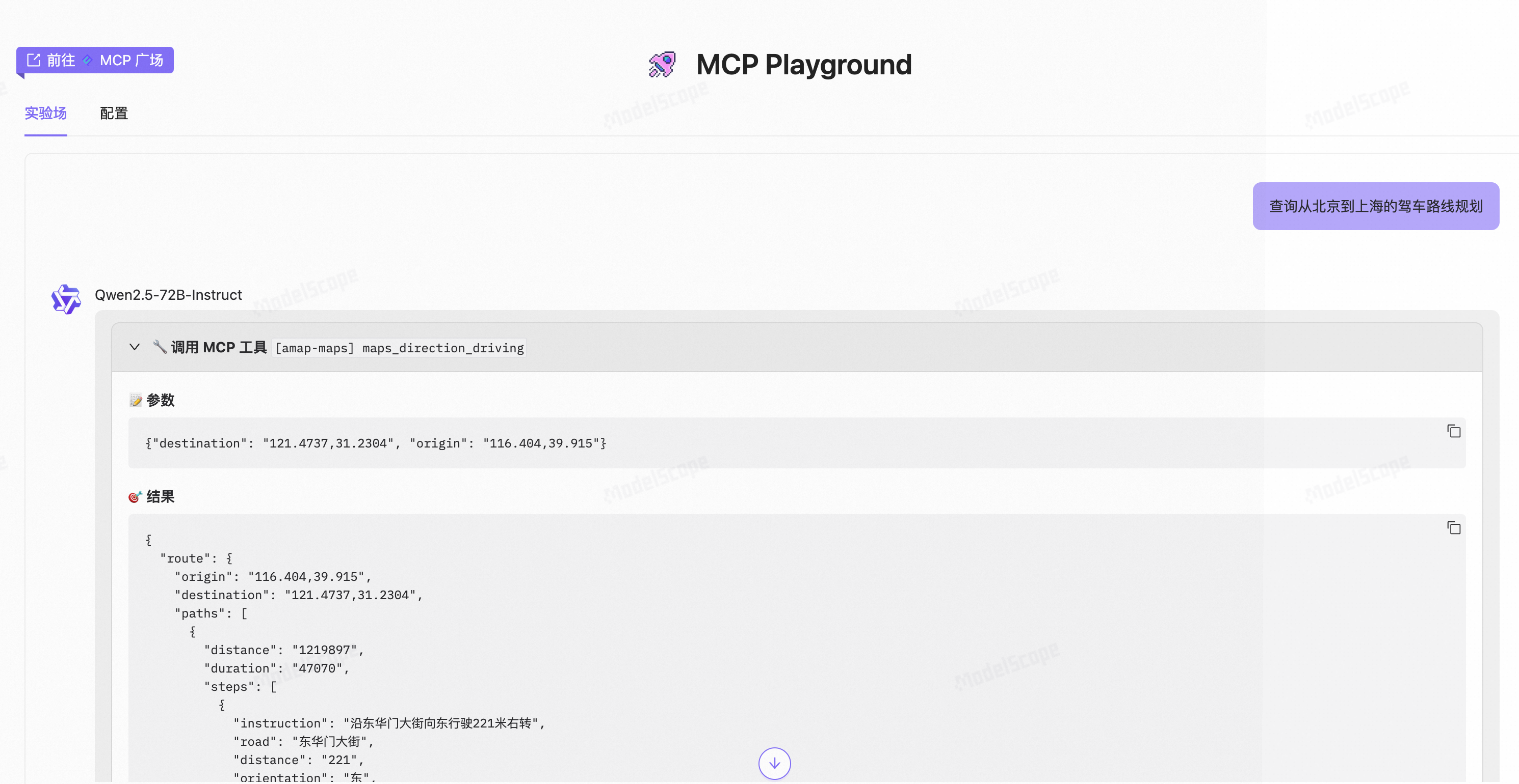 3.生成好的 MCP 服务地址能够被魔搭的 Playground 调用,要求托管的 MCP 服务稳定可靠;