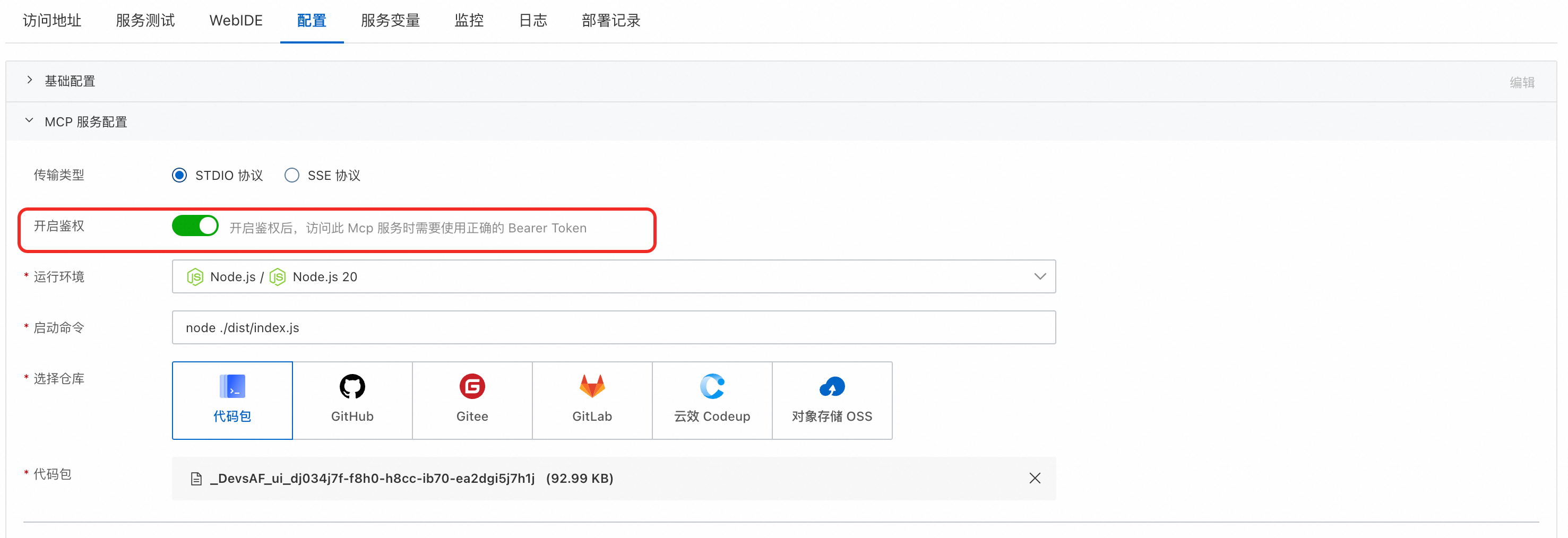 发布Bearer鉴权能力,传统STDIO无鉴权能力的MCP server托管后自带鉴权能力
