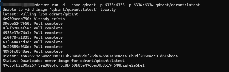 docker run -d -p 6333:6333 -p 6334:6334 qdrant/qdrant -