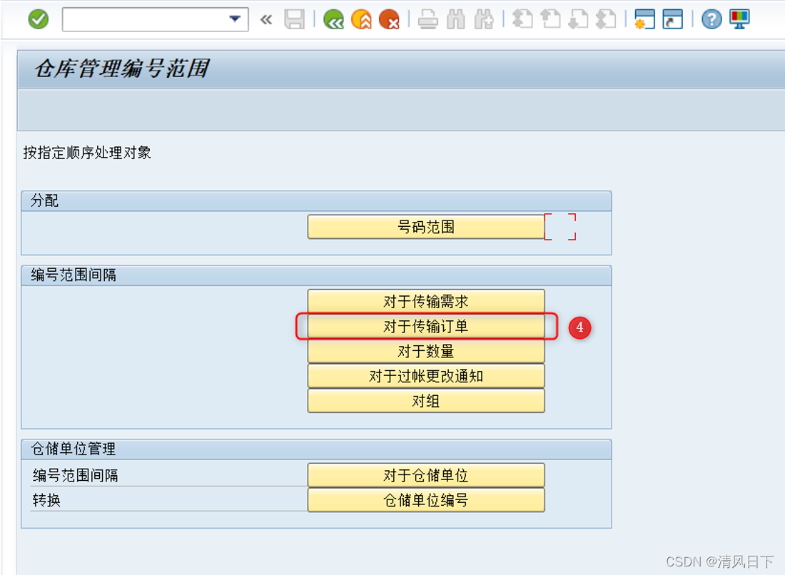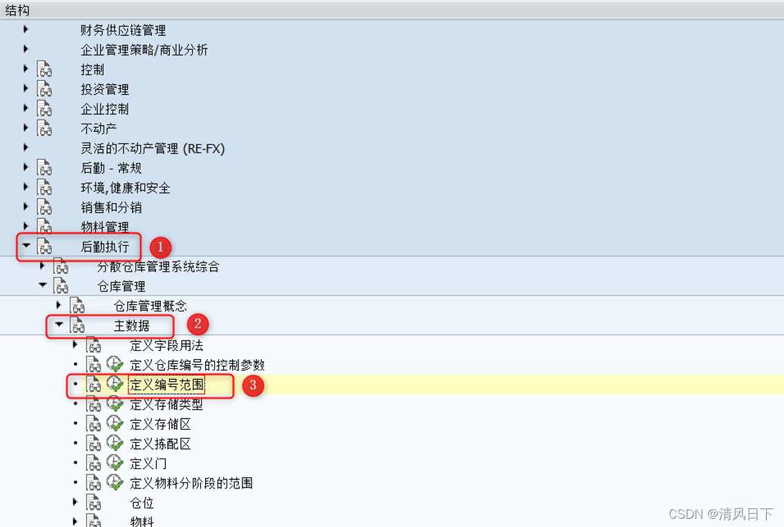 SPRO路径:SPRO->后勤执行->仓库管理->主数据->定义编码范围