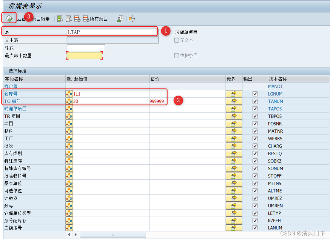 事务码:SE16N进 LTAP后台表查看 转储单的实际记录