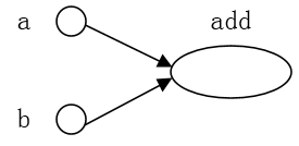 上图中每个节点都是一个运算,而每一条边代表了计算之间的依赖关系。如果一个运算的输入依赖于另一个运算的输出,那么这两个运算有依赖关系。a和b这两个常量不依赖任何其他计算,而add计算则依赖读取两个常量的取值。于是在上图中可以看到有一条从a到add的边和一条从b到add的边。在上图中没有任何计算依赖add的结果,于是代表加法的节点add没有任何指向其他节点的边。所有tensorflow的程序都可以通过类似上图的计算图的形式来表示,这就是tensorflow的基本计算模型。
