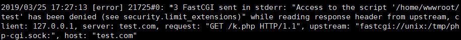 在配置新的Lnmp环境中,调试项目时遇到FastCGI错误:'Access to the script 'XXX' has been denied (see security.limit_extensions)'。为了解决这个问题,可以尝试修改php.ini文件,将cgi.fix_pathinfo设置为1,并重启PHP服务。