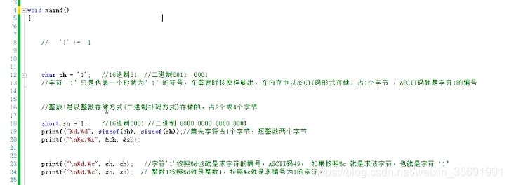 字符’1’只是代表一个形状为’1’的符号,在需要时按原样输出,在内存中以ASCII码形式存储,占1个字节。