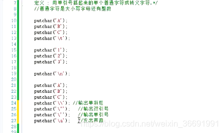 1、定义:用单引号括起来的单个普通字符或转义字符.