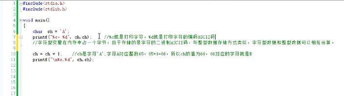 字符型变量在内存中占一个字节,由于存储的是字符的二进制ASCII码,与整型数据存储方式类似,字符型数据和整型数据可以相互运算。