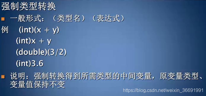 备注:强制转换得到所需类型的中间变量,原变量类型、变量值保持不变
