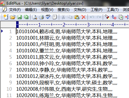 4、重点!另存为的slyar.csv是可以用记事本或者Editplus等文本编辑器打开的,我们打开来看一下。