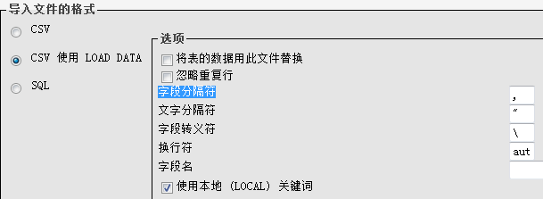 7、"导入文件的格式"选择第二个"CSV 使用 LOAD DATA"。