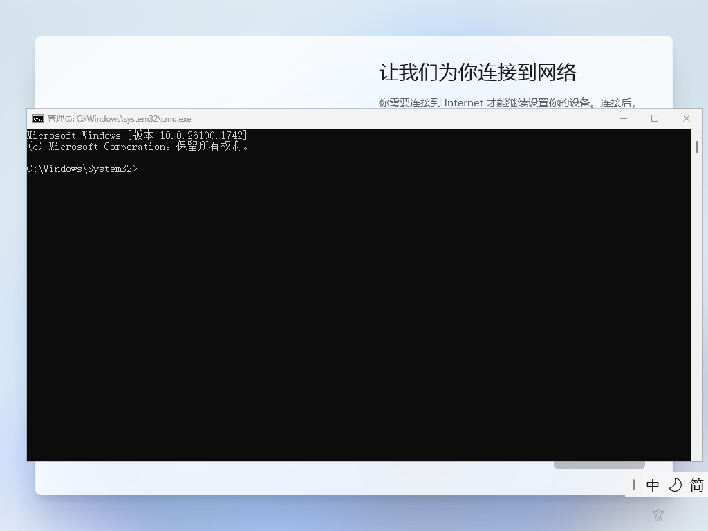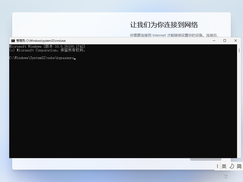 输入“oobe\bypassNRO”回车,回车后笔记本会自动重启