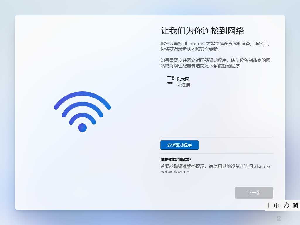 经常我们重置windows系统后会出现需要连接无线wifi的地方,如果不想连接可以跳过