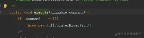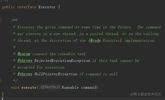 通过执行execute方法 该方法无返回值,为ThreadPoolExecutor自带方法,传入Runnable类型对象