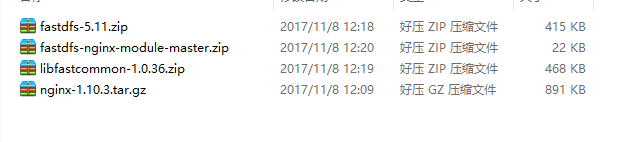 [root@sybmfw12-lnsy fastdfs-5.11]# ll /etc/fdfs/ -rw-r--r--. 1 root root 1463 11月 8 12:52 client.conf.sample -rw-r--r--. 1 root root 7938 11月 8 14:55 storage.conf.sample -rw-r--r--. 1 root root 7397 11月 8 12:36 tracker.conf.sample