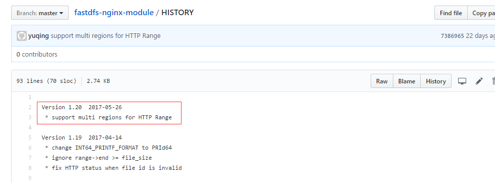 遇到这个错误的原因是,在fastdfs-nginx-module的HISTORY中你可以到: