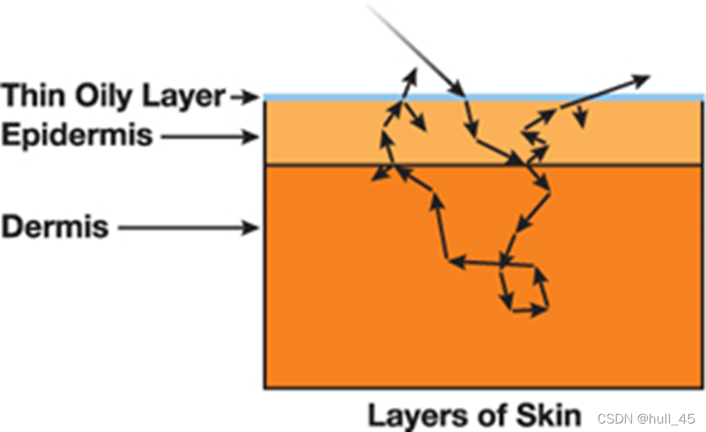 学界认为皮肤由表面的油脂层和下面的另外两层构成。皮肤有这样的结构,它的BSSRDF和BTDF是不可忽视的。