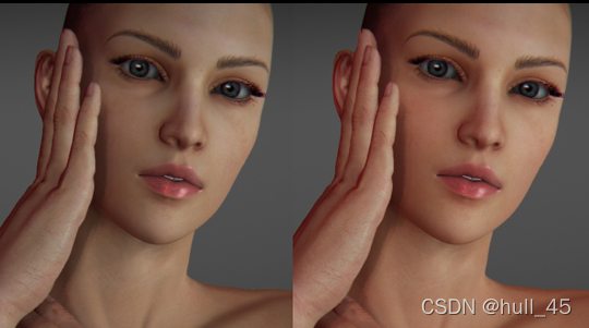 看不出来问题在哪的话,可以看看这张图,对比一下会发现好的皮肤的红润感主要体现在明暗交界处,会发红: