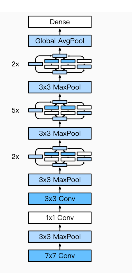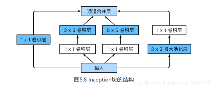 - Inception块相当于⼀个有4条线路的⼦⽹络。它通过不同窗口形状的卷积层和最⼤池化层来并⾏抽取信息,并使⽤1×1卷积层减少通道数从而降低模型复杂度。