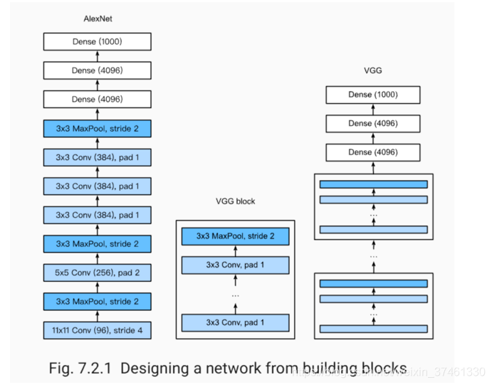 VGG:通过重复使⽤简单的基础块来构建深度模型。