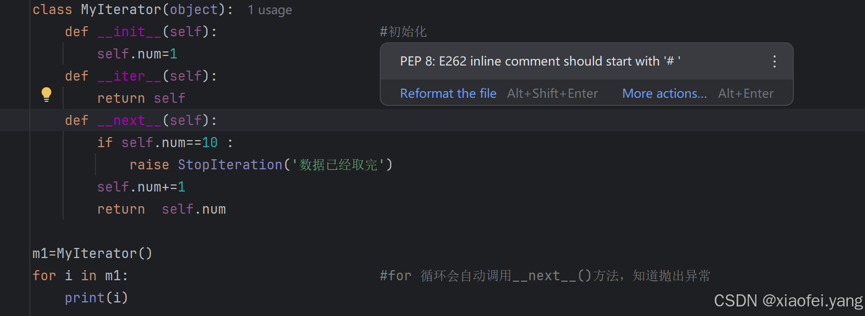 对象必须提供一个next方法,执行该方法要么返回下一项,要么触发stopIteration异常,来终止迭代