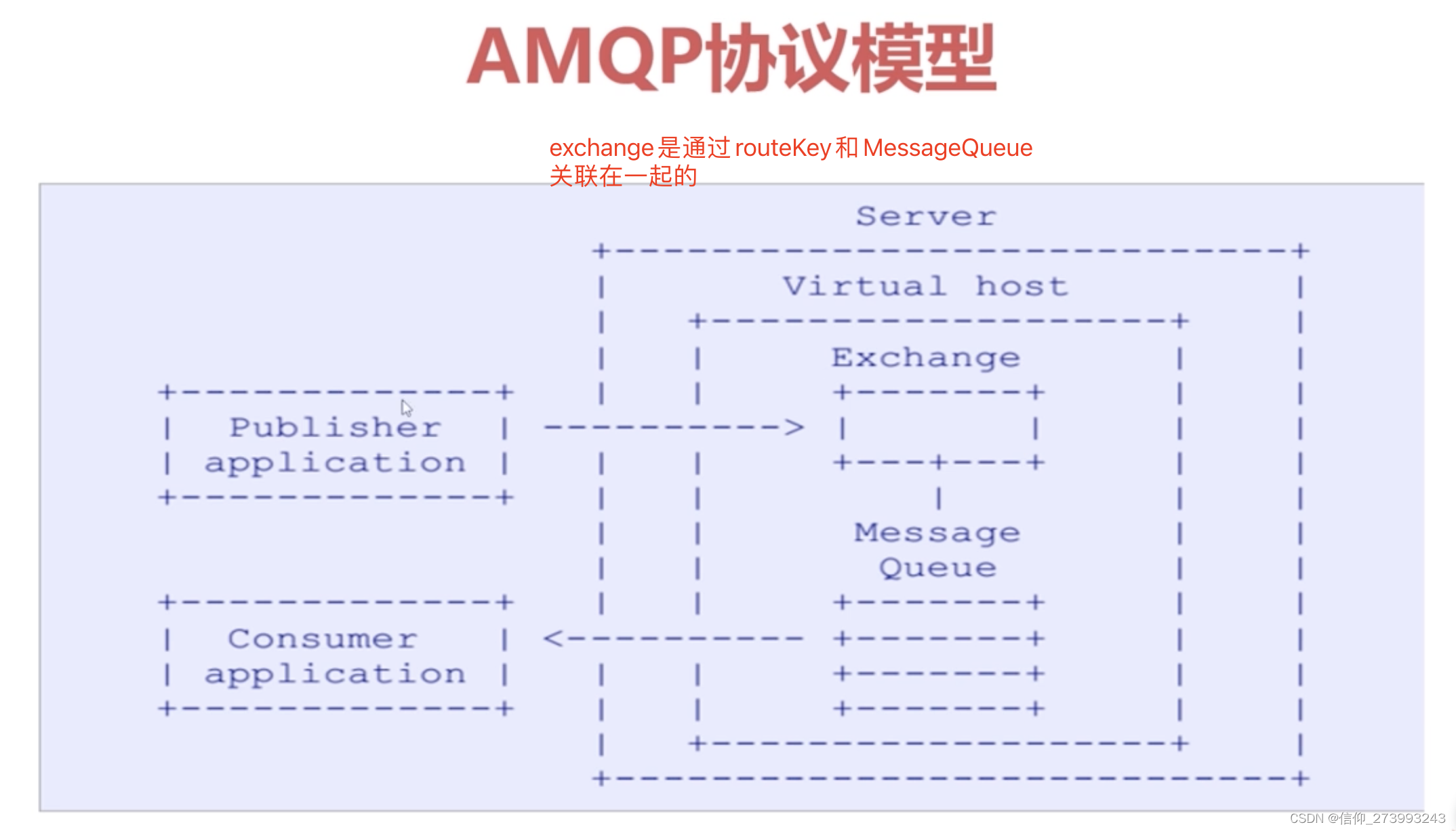 1、注意里面包含【虚拟机 Virtual host】、【Exchange】、【routeKey】、【queue】