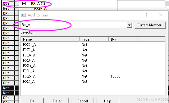 再点击OK后,回到PCB的规则管理器,把统一规则的网络添加到刚才建立的BUS里面。