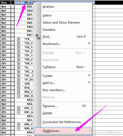 点击刚才创建的BUS,右键后点击SigXplorer,