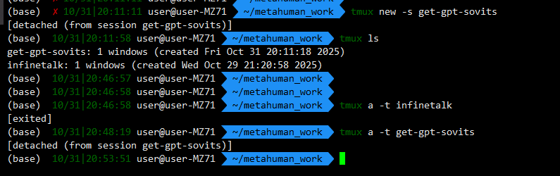 # 3. 需要离开时按 Ctrl+b d 断开