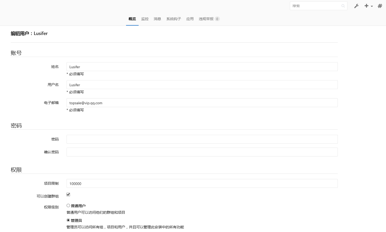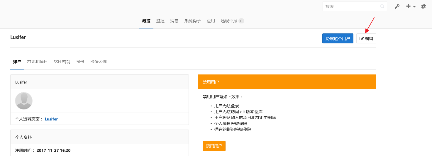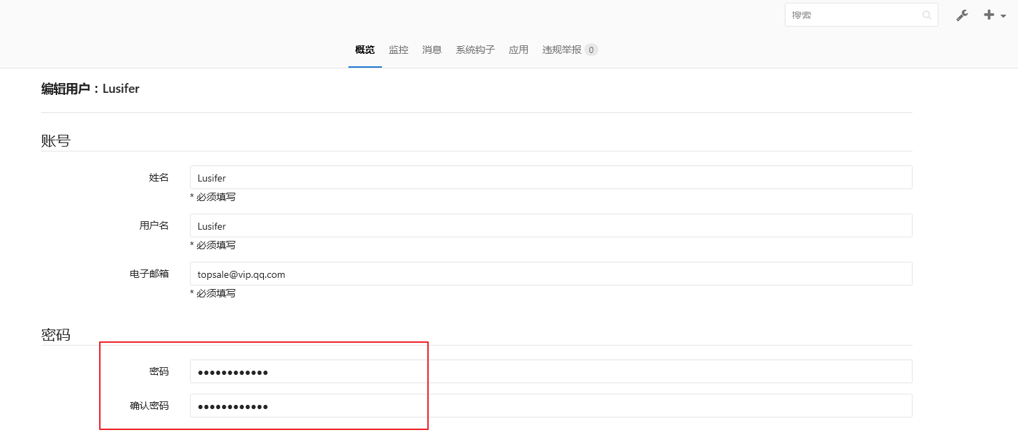 由于我们创建时并没有配置邮箱,所以还需要重新编辑用户信息并手动设置密码