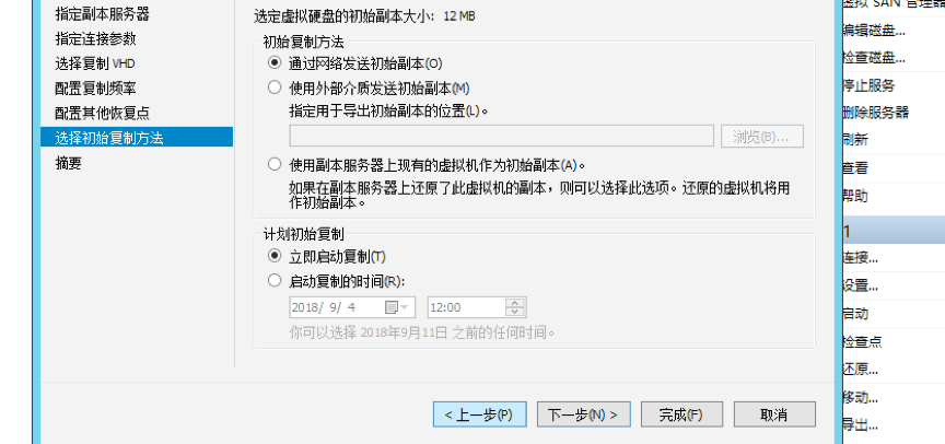 (6) 设置初始复制方式:可通过网络发送或者导出的方式。如导出虚拟机 然后刻成光盘,邮寄到数据中心DC2,再进行导入操作。其他的数据变更可以通过网络传输。