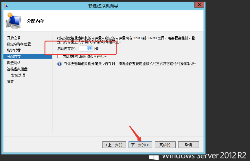 动态内存功能:勾选启用。Hyper-V 2.0 后引入的功能,在虚拟机运行过程中,根据自身情况申请或者释放内存资源,使得内存利用率更高。