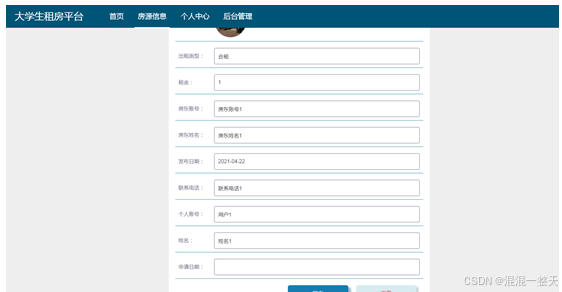 用户进入前台之后可以对需要的房源提交租房信息。其页面见下图。用户对需要的房源进行租房,提交租房信息时要设置申请日期。