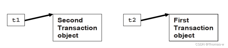 t2 = t1; //将t1的值赋予给t2,t1和t2同时指向一个对象