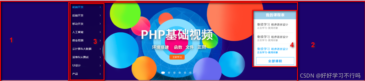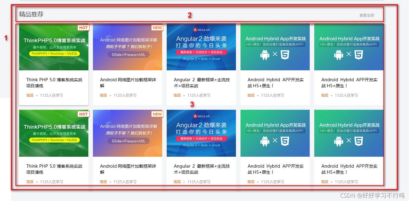 2号子盒子是 上部分 我们命名为 course-hd (hd 是 head 的简写 头部的意思,我们经常用)