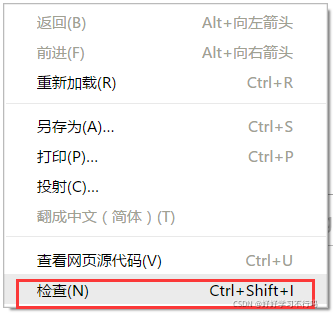 直接在页面上点击右键,然后选择 “检查” 快捷键 F12 或者 ctrl+shift+i