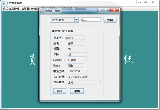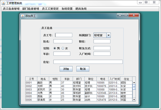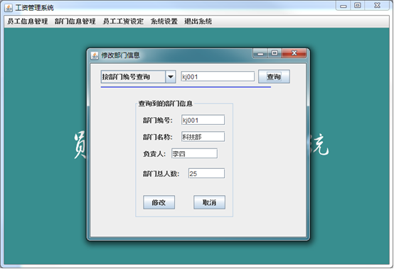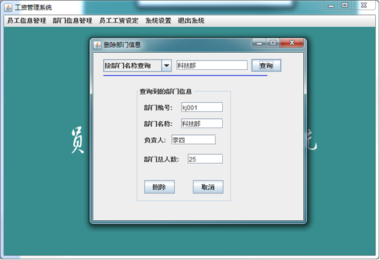 部门信息管理:部门信息的增加、修改、删除、查询: