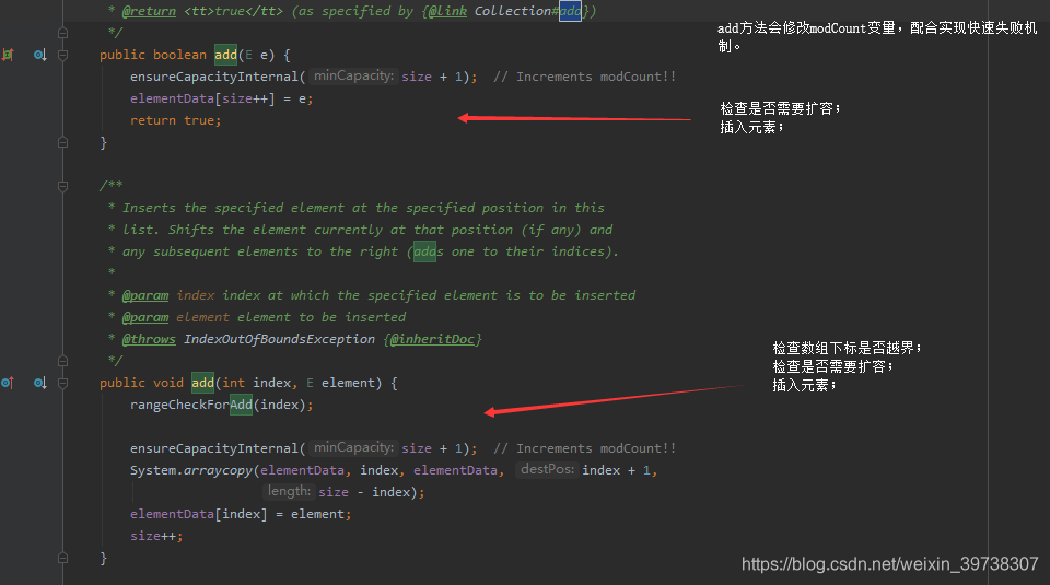- ArrayList还引入了快速失败机制,关于快速失败机制:https://blog.youkuaiyun.com/weixin_39738307/article/details/106100118;