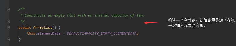 其中比较常用的是无参构造器。结合上面的分析,使用无参构造器和使用指定容量的构造器并且指定容量为0的时候,ArrayList会将存储数据的Object设置为一个空的指定数组。