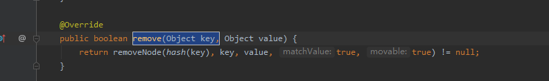 再来看一下另外一个remove(Object key, Object value)方法,在平时的开发中,用到的次数比较少。先看一下是怎么实现的: