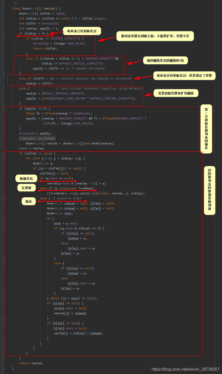 之前在put方法中有提到过扩容方法,这里做一个补充。先看注解给出的信息: