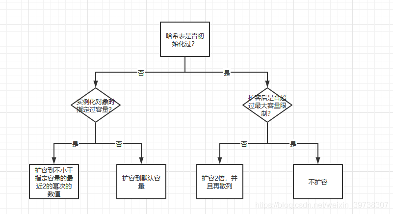 可以知道,扩容之后的容量为原来容量的2倍,以及扩容会导致再哈希。