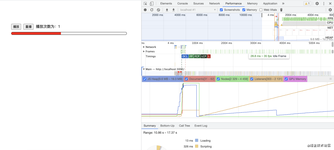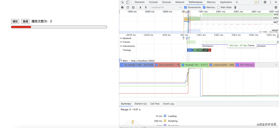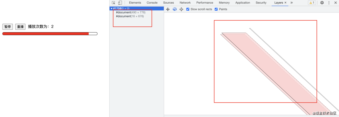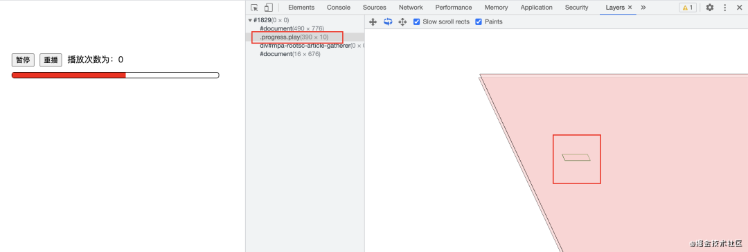 解决方案:启用GPU加速,避开重排和重绘的环节,将进度条单独提升到一个图层,即不影响其它元素