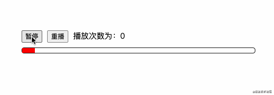我们设置了两个@keyframes动画是为了在使进度条重新播放时可以做一个切换,即点击 "重播" 时,直接切换到另一个动画,就可以实现进度条从0开始递增