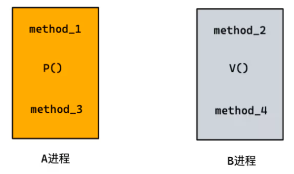 A 进程的 method_3 需要在 B 进程执行 method_2 后运行:保证在执行 A 进程 method_3 之前都执行 B 进程的 method_2 -> 执行 method_3 时需要借助 B 进程发起 V 操作;