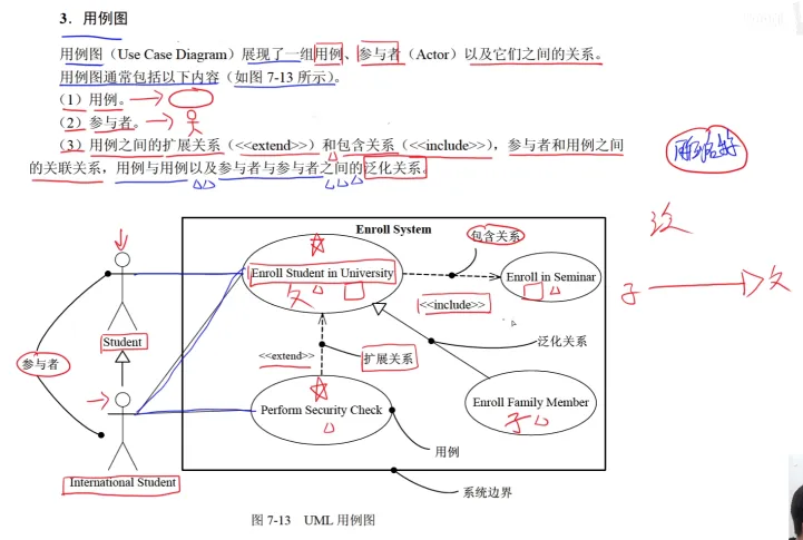 - 包括用例、 参与者、用例和用例之间的关系
