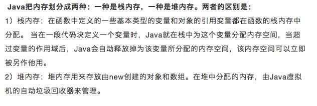 4、Java的虚拟机JVM的两个内存:栈内存和对内存的区别是什么?
