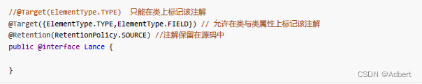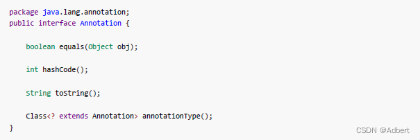 与声明一个"Class"不同的是,注解的声明使用@interface 关键字。一个注解的声明如下: